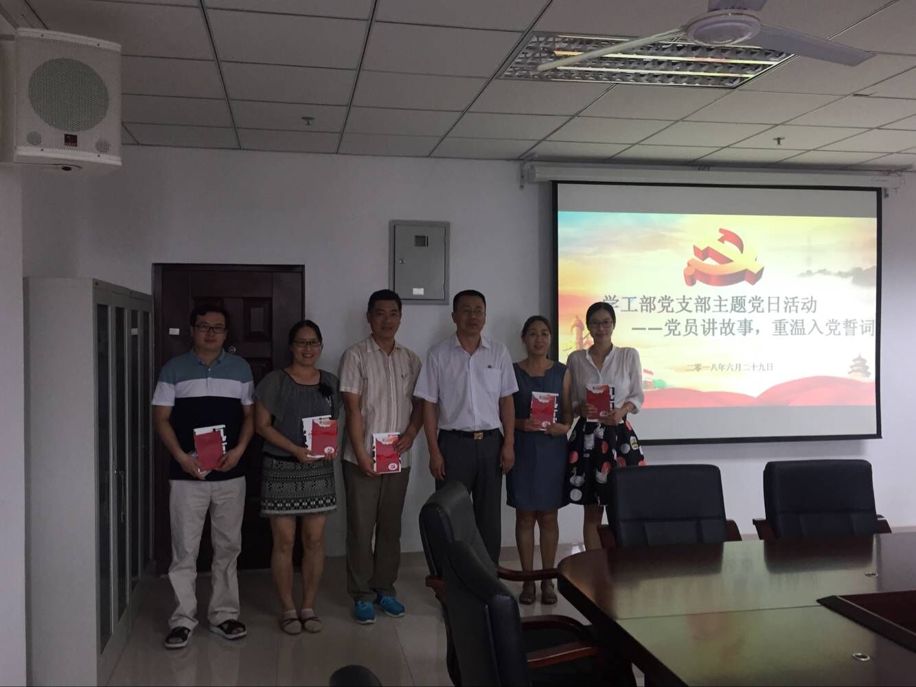 学工部党支部以落实det365亚洲版的要求给党员过“政治生日”为契机,激励广大党员要时刻牢记党员身份,发挥先锋模范作用,践行入党誓词,以身作则,永葆共产党员的先进本色,积极向上,努力工作,为提升学校学生思想政治工作质量做出新的贡献。